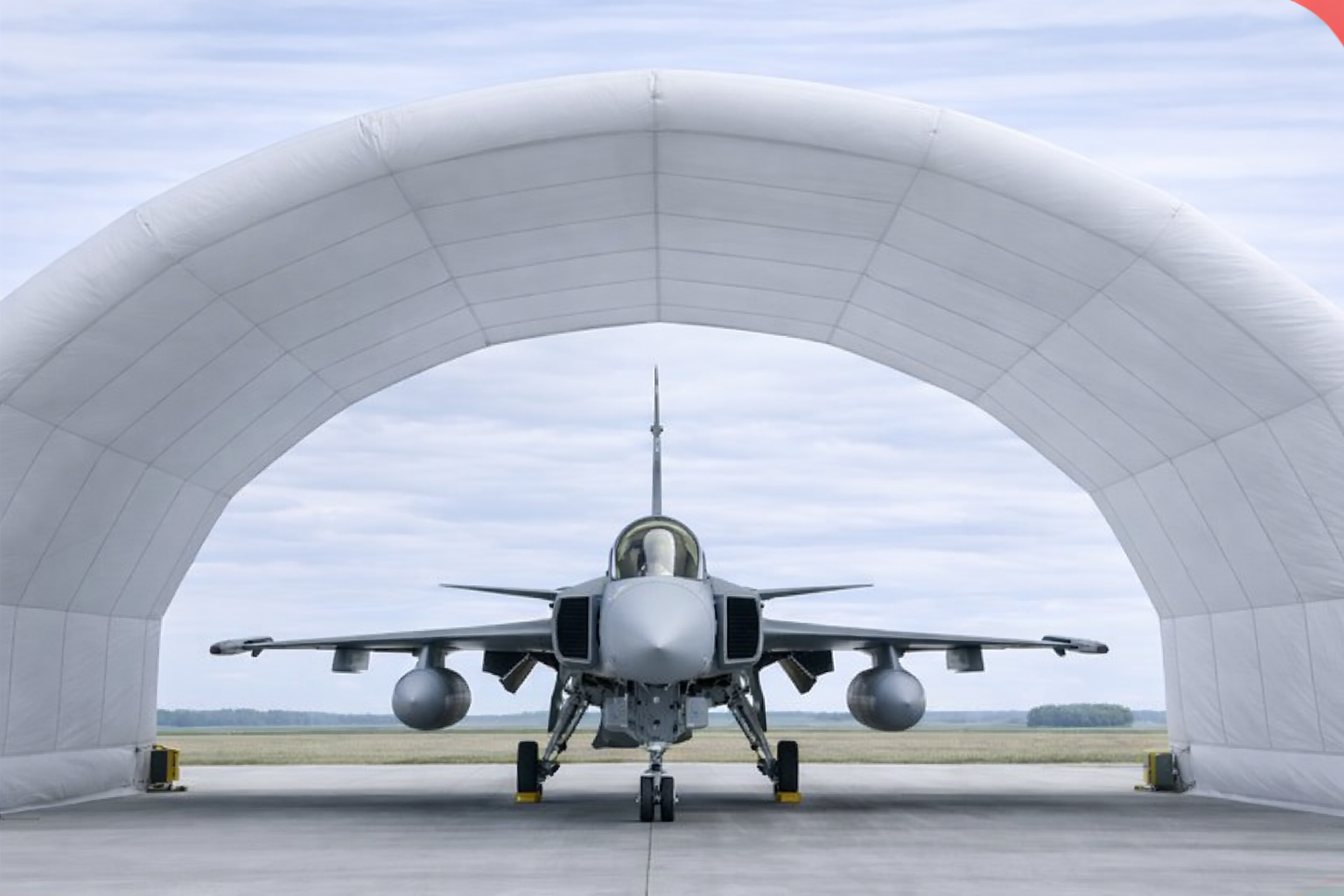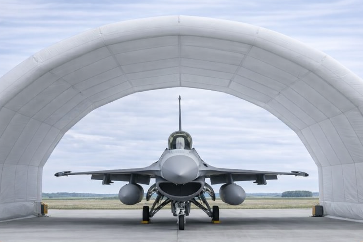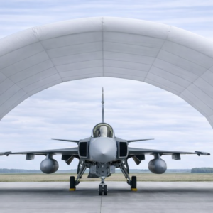 The Nordic D-Dome Fighter Hangar is an advanced inflatable hangar solution designed to house fighter aircraft such as F-16 and JAS 39 Gripen. Built with modular sections, it enables fast deployment and flexible configuration, making it ideal for military, tactical, and remote airbase operations.