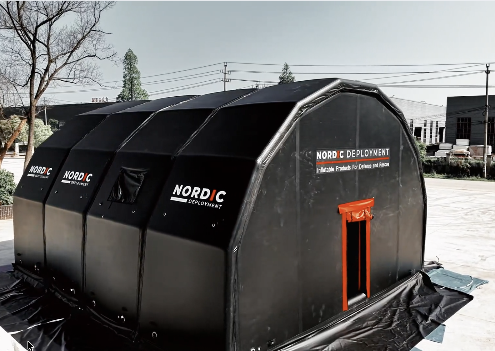 Deploy fully functional buildings anywhere in minutes with the Nordic D-Dome system. A high-performance modular inflatable structure designed for defense, emergency response, and industrial applications.